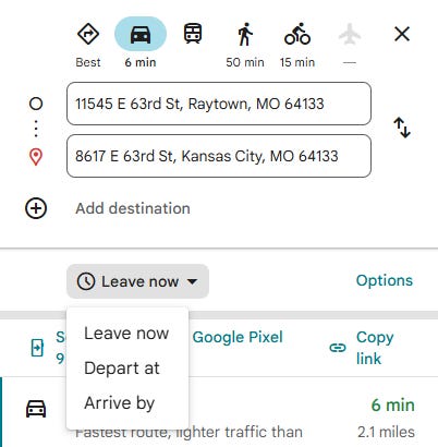 While this example created a single runtime, this process works for developing time period specific runtimes as well. To do this, simply adjust the “Depart at” time in Google Maps, and repeat the process with the new Google travel times.