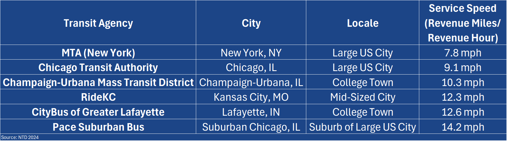 Note that revenue hours include layover time when the bus isn’t moving, so these speeds are a bit faster than the actual vehicle travel speed.